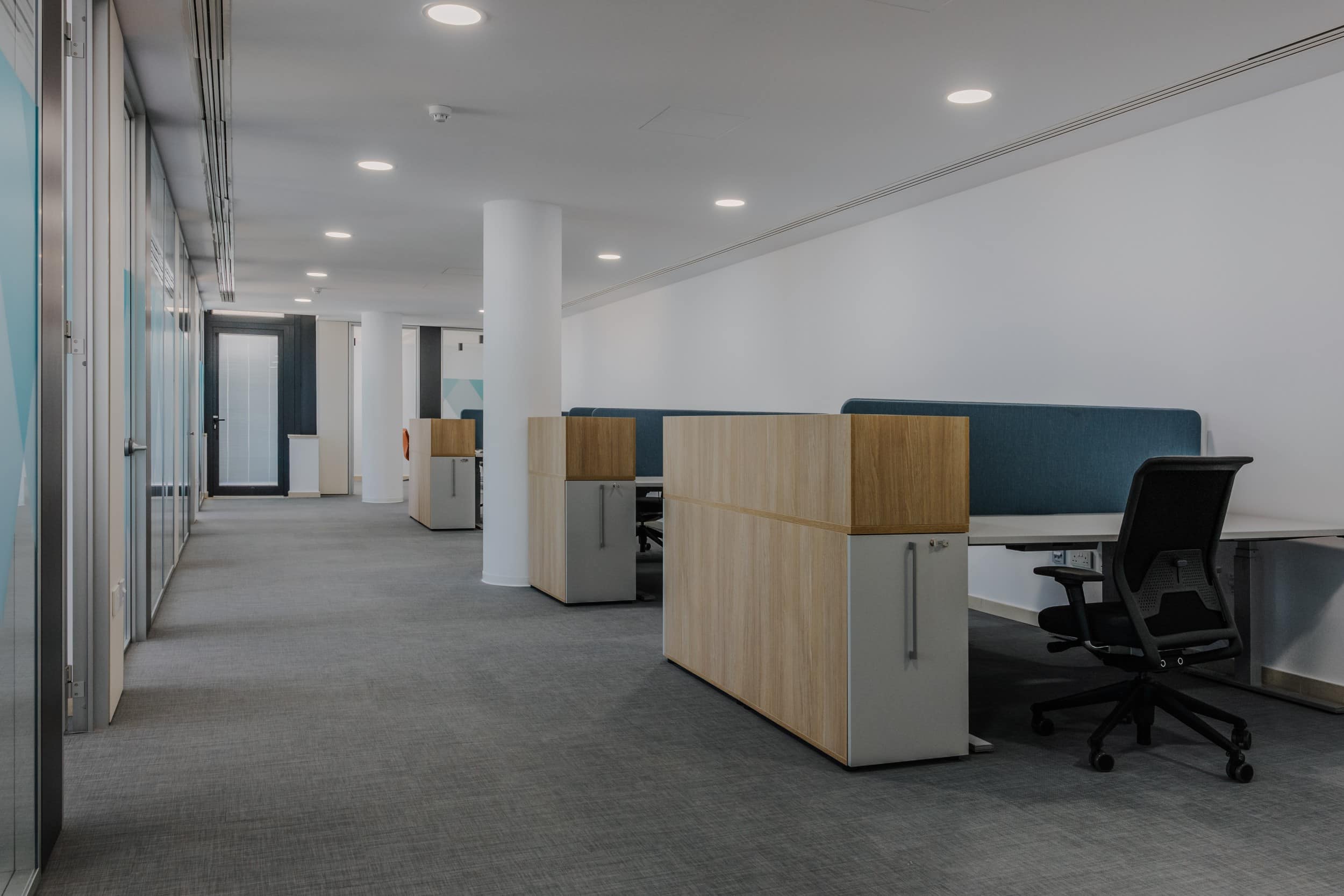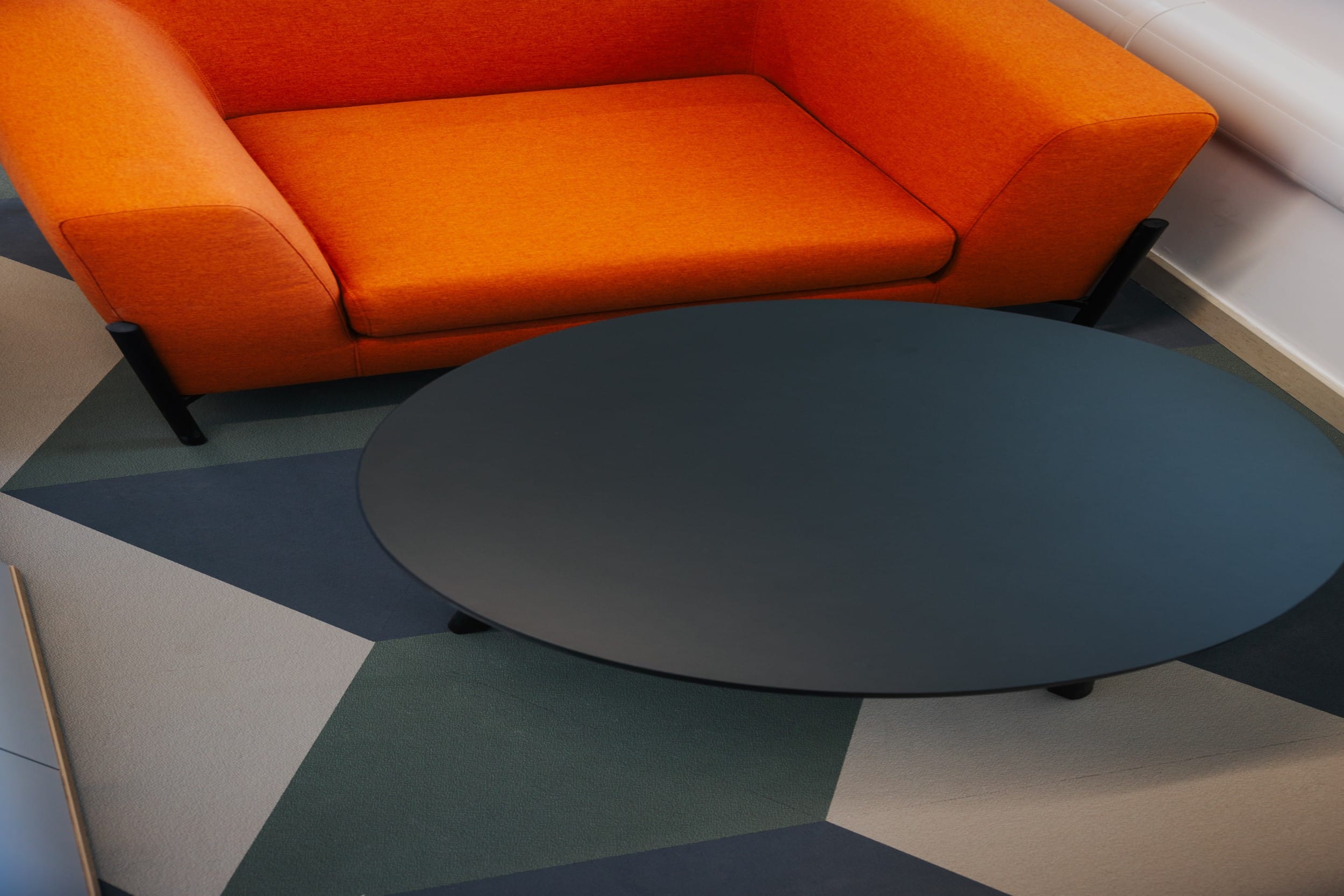 Woven Vinly Flooring / Vitra Seating / Ergonomic Seating / Operational Desks with Fabric Acoustic Panels / Lounge Furniture / Executive Desks / Planter Boxes / Pedestals / Visitor Seating / Meeting Room Tables & Seating / Lounge Furniture / Armchairs